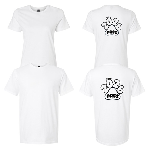 The 2026 Grad T-Shirt is white and includes a paw shape image with “2026 PRSS” text in black