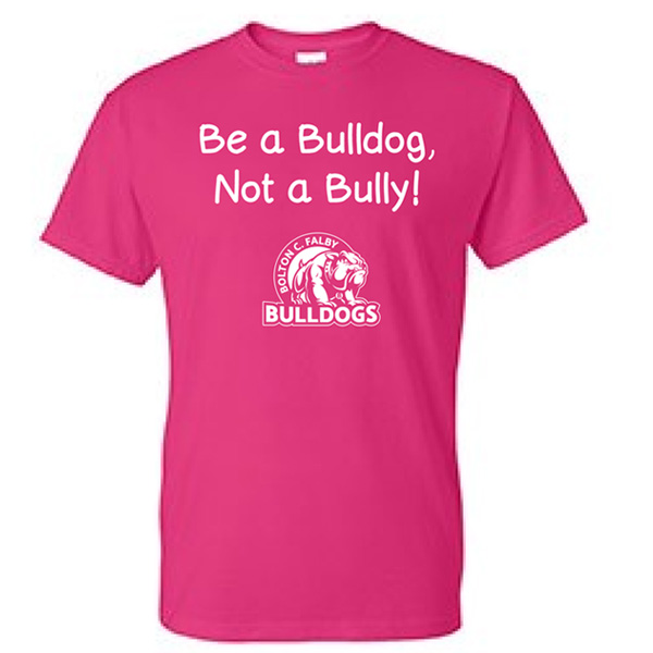 The Anti-Bullying T-Shirt is pink with a 1 colour white imprint on the front.