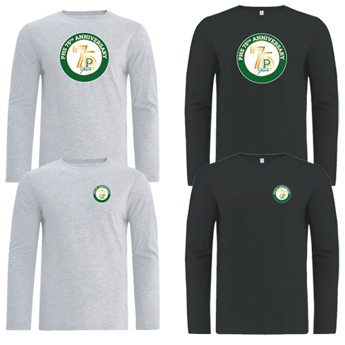 The Basic Long Sleeve Tee is available in athletic grey or black. Choose the