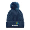 The Jacquard Knit Fur Pom Pom Toque is navy with a full colour embroidered logo on the front.
