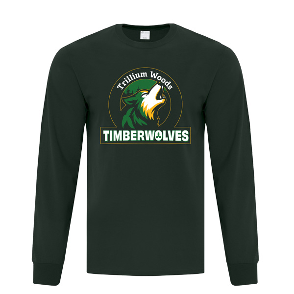 The Longsleeve Tee is dark green and includes a full front 3 colour round logo.