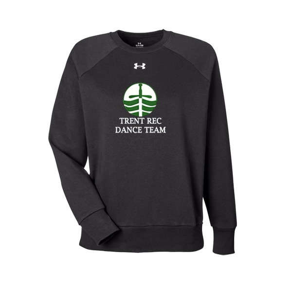 The Women’s Under Armour Rival Fleece Crew is black and includes a full front embroidered twill applique logo. This product can be personalized with a name on the right sleeve. Personalization cost is $8.50.
