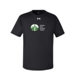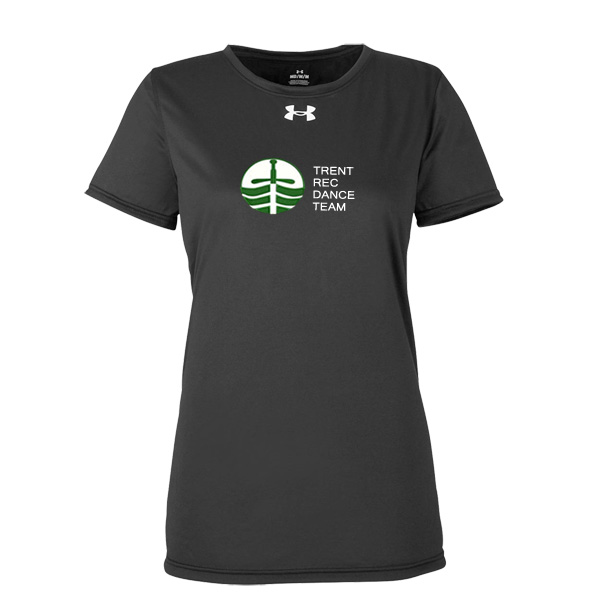 The Women’s Team Tech Short Sleeved Shirt is black and includes a full front 2-colour vertical logo.