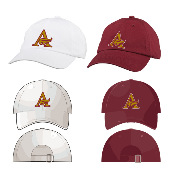 The Reunion Hat is adjustable and available in white or garnet. This hat includes an embroidered logo on