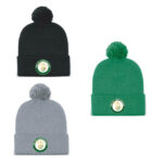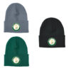 The Roll Up Toque is available in athletic green, black or oxford athletic. This toque includes a front