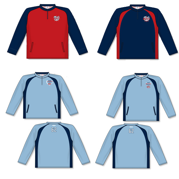 The Sublimated LS Cage Jacket is available in navy, red or Columbia blue. The navy and red jackets both