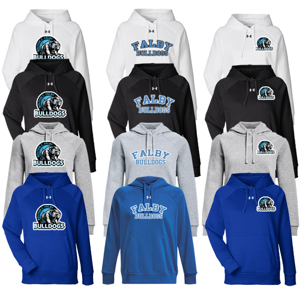 The Under Armour Hooded Sweatshirt is available in black, white, royal, or mod grey. This sweatshirt includes a